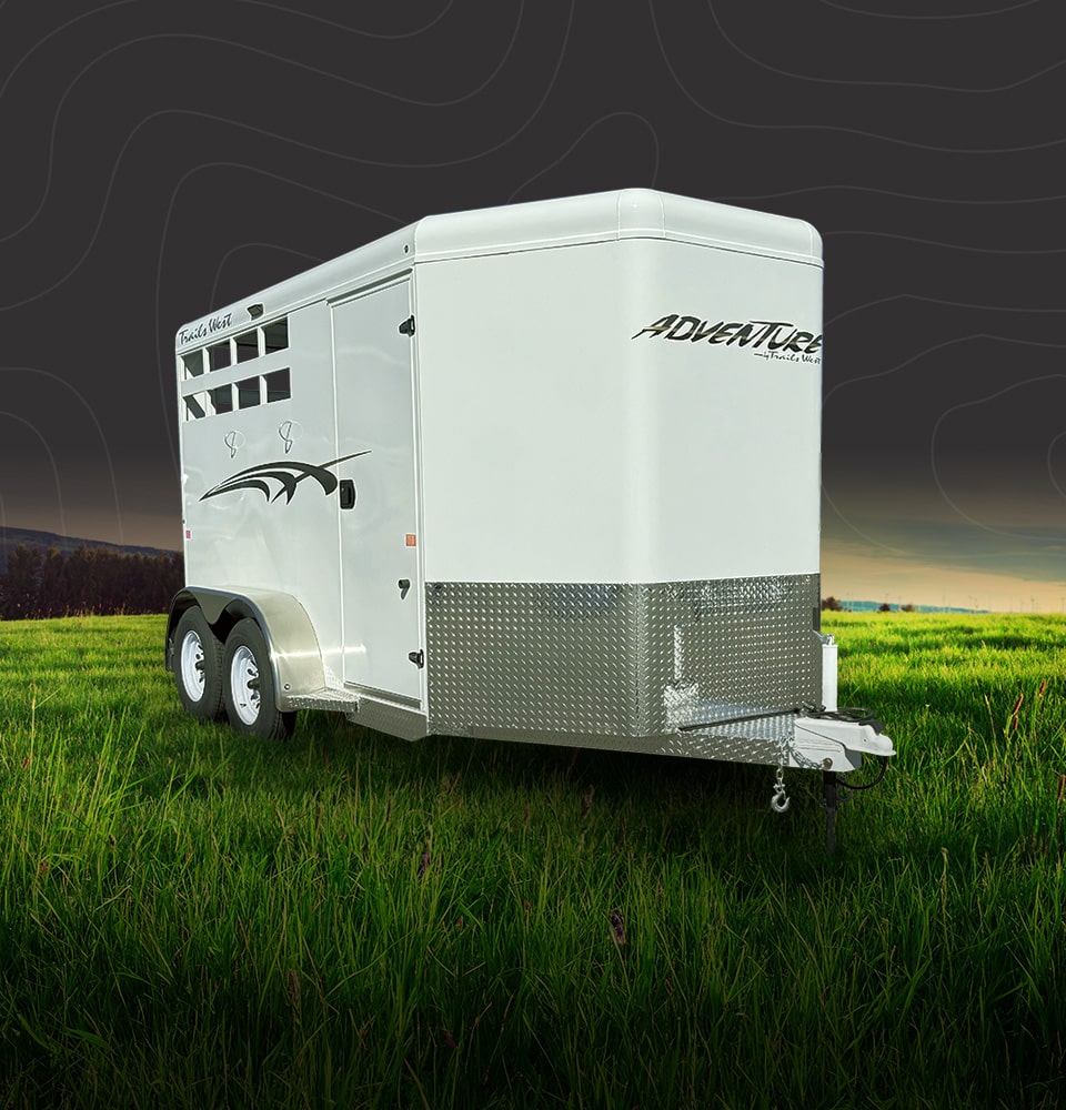 The Adventure is our most economical horse trailer and is loaded with standard features, making it one of the best values in the industry. This trailer features double air gaps on head and tail side and measures 6’9″ wide and 7’0″ tall. It comes standard with horse dividers, rubber floor mats and 48″ tall rubber wall mats surrounding the entire horse compartment.