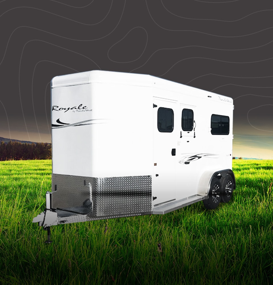 Do you haul a big horse? Well, look no further than the Trails West Royale. This side-by-side trailer features one of the industry’s largest stalls, giving your horse the comfort and ride they deserve. The walk-through loading style makes it a breeze to safely load and unload your horses. And our Royale Plus model allows the inside divider and hardware to be easily removed creating a single large box stall for whatever you’re looking to haul.